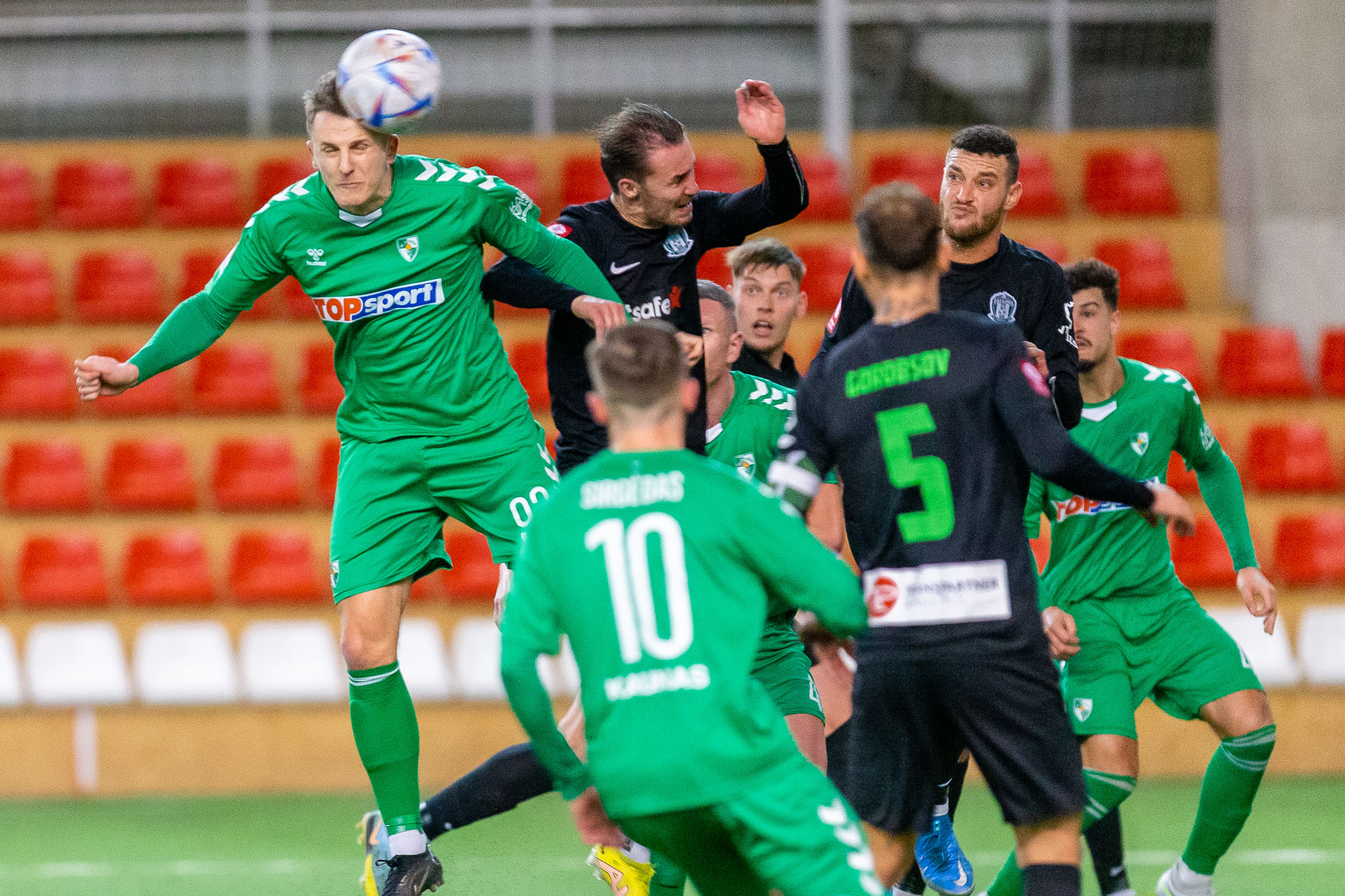 Dviejų praėjusio sezono Lietuvos futbolo A lygos lyderių dvikova Marijampolėje antradienį baigėsi lygiosiomis 1:1.