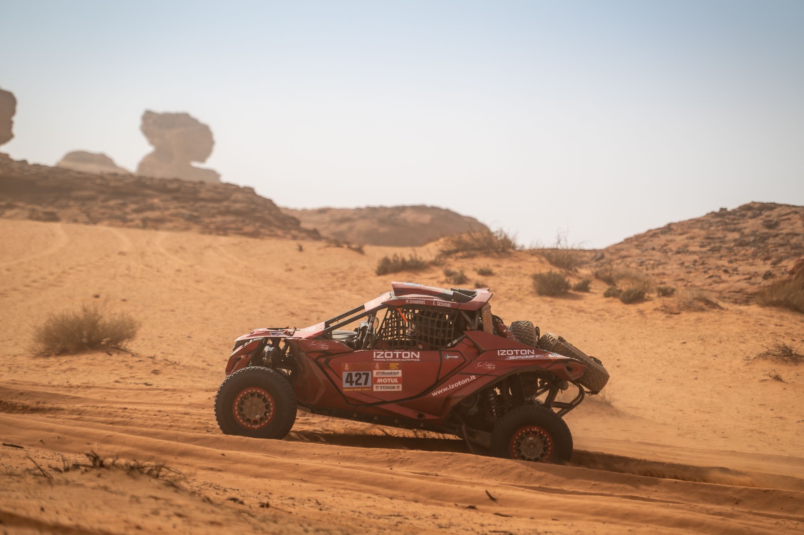 2026-ųjų metų Dakaro ralio SSV klasėje „Izoton sport“ duetas lenktyniauja 427-uoju numeriu.