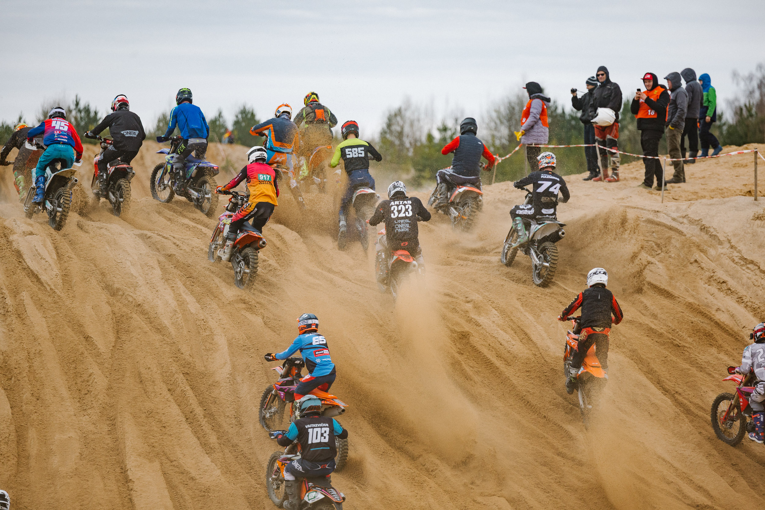 Dėl trasos specifikos – ji yra trumpesnė nei numato Lietuvos motociklų sporto federacijos nuostatai – buvo priimtas sprendimas koreguoti startų tvarką. Pradedančiųjų „C“ ir „C+“ klasių dalyviai į trasą išriedėjo atskiru startu vidurdienį. Nors trasa buvo trumpesnė, jos smėlinga, klampi danga ir statūs pakilimai pareikalavo iš sportininkų maksimalių pastangų – neišvengta ir griuvimų.