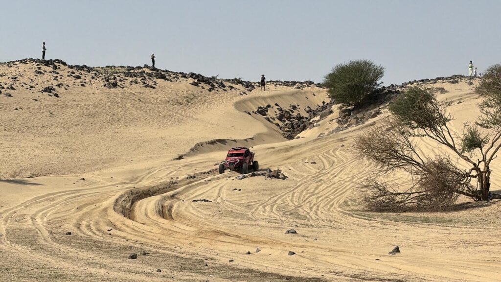 Ekipažas trasoje matė nemažai sustojusių bagių bei automobilių. Jie pravažiavo ir pro „Defender“ komandos lenktynininkę Sarą Price, kuri irgi buvo sustojusi dėl apgadintos visureigio pakabos. Kai kurie masyvūs akmenys buvo sustabdę net sunkvežimius. „Izoton sport“ duetui pavyko sėkmingai pasiekti tarpinę techninio aptarnavimo zoną, kur mechanikai iš jų paėmė pramuštą ratą ir įdėjo atsarginį vietoje jau panaudoto.