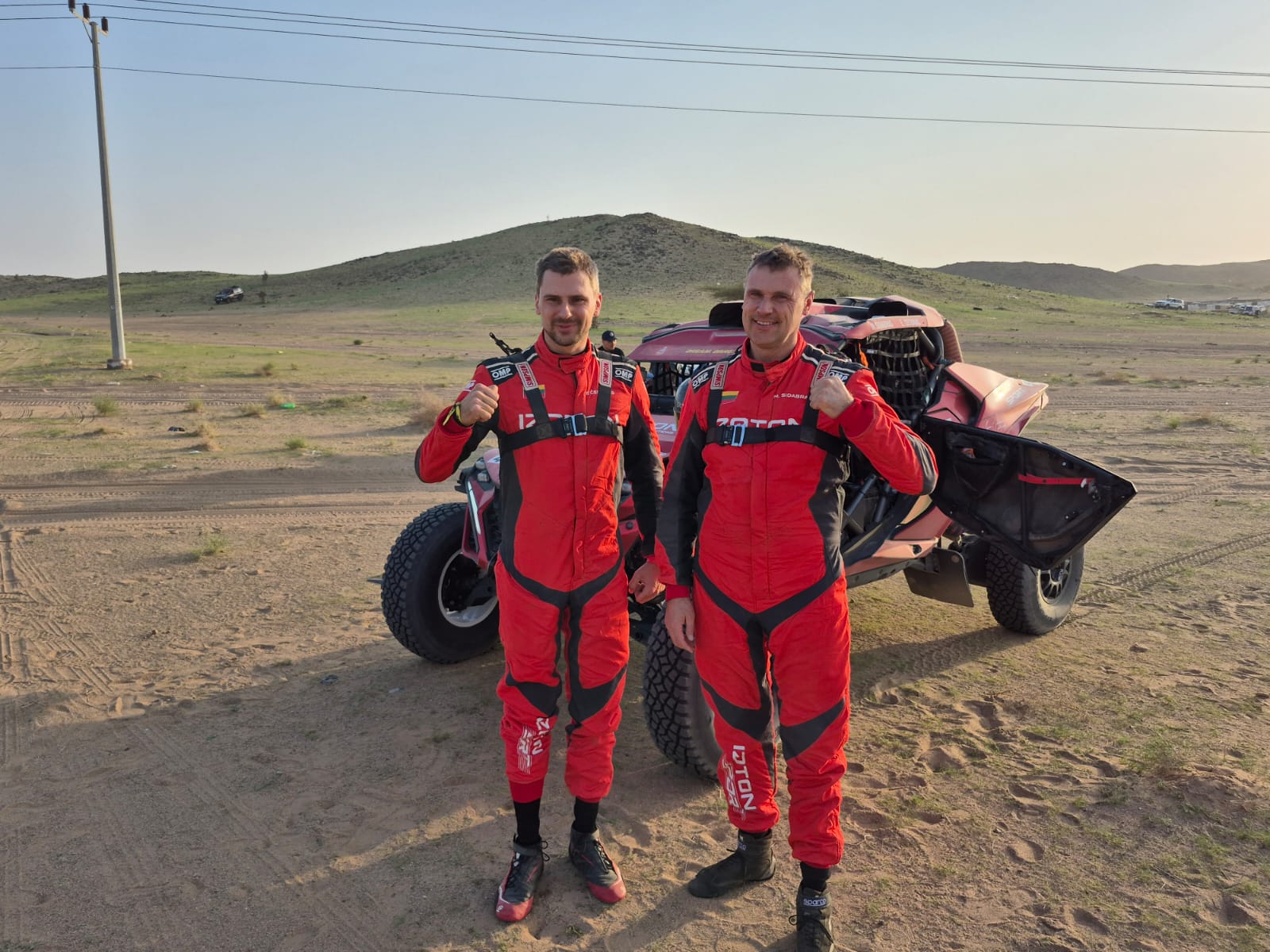 Po finišo duetas neslėpė, kad diena nebuvo lengva, o pavojų kėlė dideli ir kai kada sunkiai pastebimi akmenys. Visgi vienas akmuo buvo tvirtesnis už ekipažo bagio padangą, tad „Izoton sport“ ekipažui teko stoti keisti ratą.
