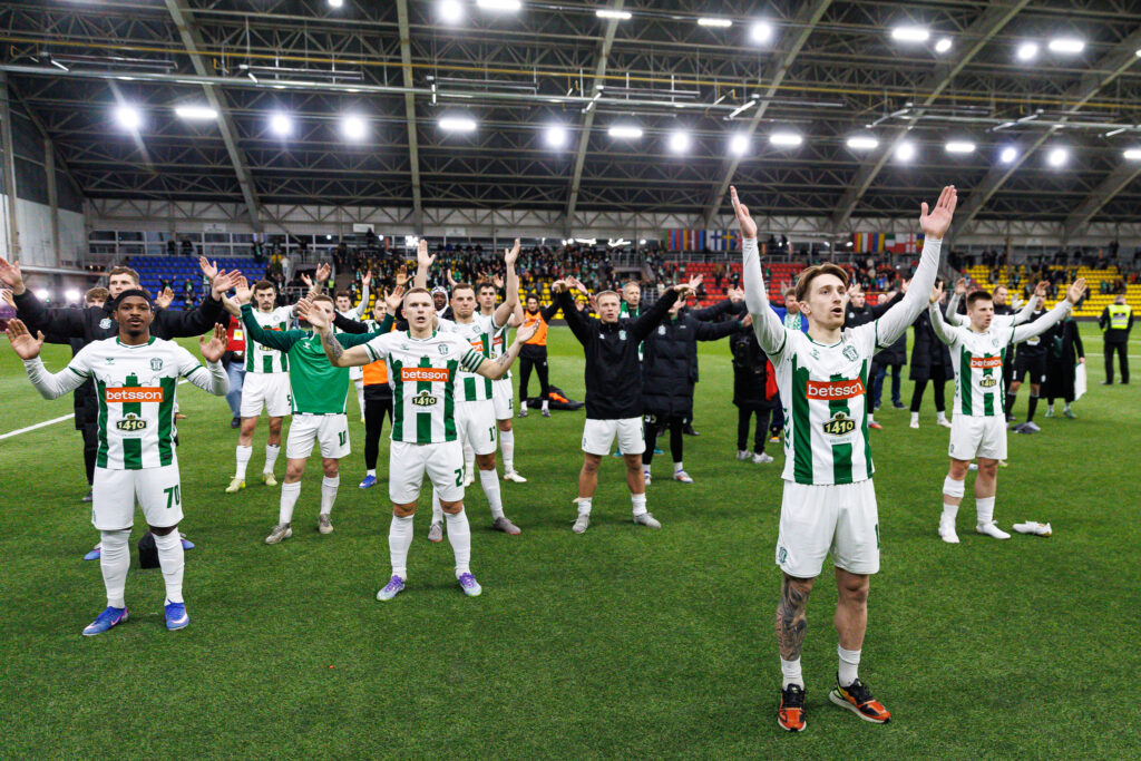 Nepaisant tuo pat metu vykusio „Eurovizijos“ atrankos finalo ir Lietuvos krepšinio rinktinės rungtynių Islandijoje beveik 3000 žiūrovų į „Sportimos“ maniežą sutraukęs FK „Žalgiris“ mačo pradžioje patyrė šaltą dušą, kai 16 min. besiginančius vilniečius suklaidinęs Rokas Rasimavičius tiksliu smūgiu nuginklavo šeimininkų vartininką Carlosą Olsesą.
