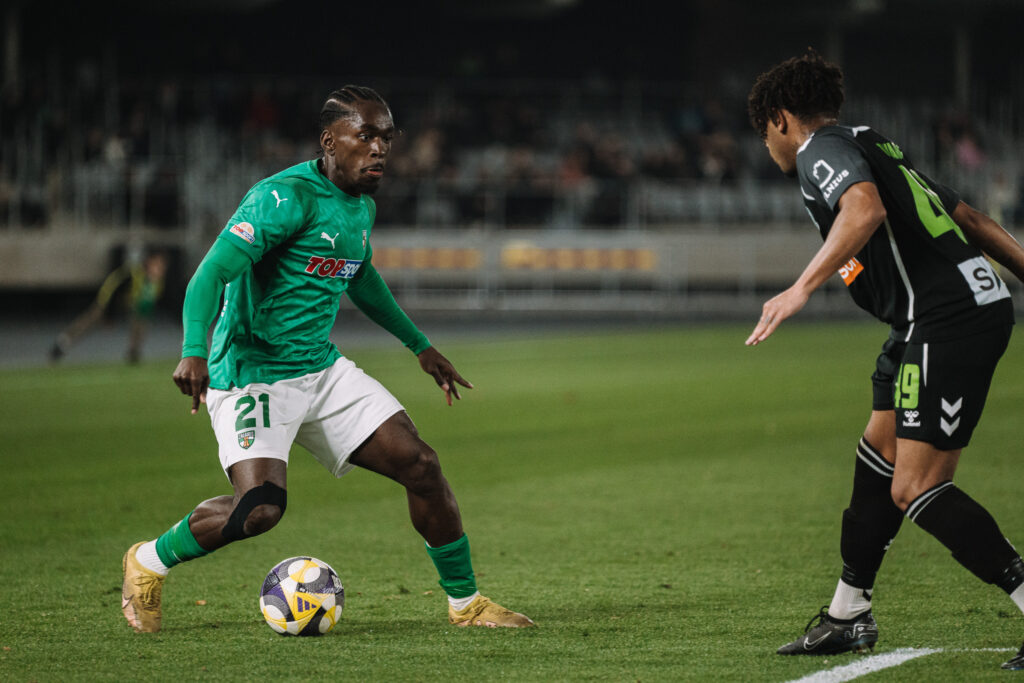 Antrąją susitikimo dalį pavojingu išpuoliu pradėjo laikinosios sostinės ekipa – atakos smaigalyje atsidūręs Antonas Tolordava smūgiavo į C. Olsesą.