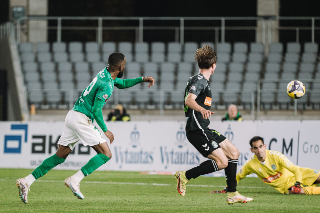 Susitikimo pradžioje aktyvesni buvo kauniečiai – po kartą iš toli kamuolį virš vartų pasiuntė komandos kapitonas Fiodoras Černychas ir Damjanas Pavlovičius, o Haymennas Bah-Traore smūgiavo greta virpsto.