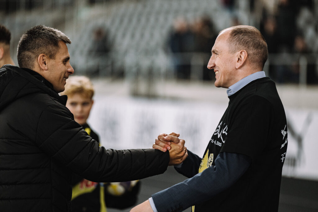 Susitikimui einant į pabaigą svečių vartų sargas apsigynė nuo stipraus tolimo Nikita Komissarovo bandymo, Gabrieliaus Micevičiaus bandymas galva iš arti skriejo tiesiai į M. Bertašių.