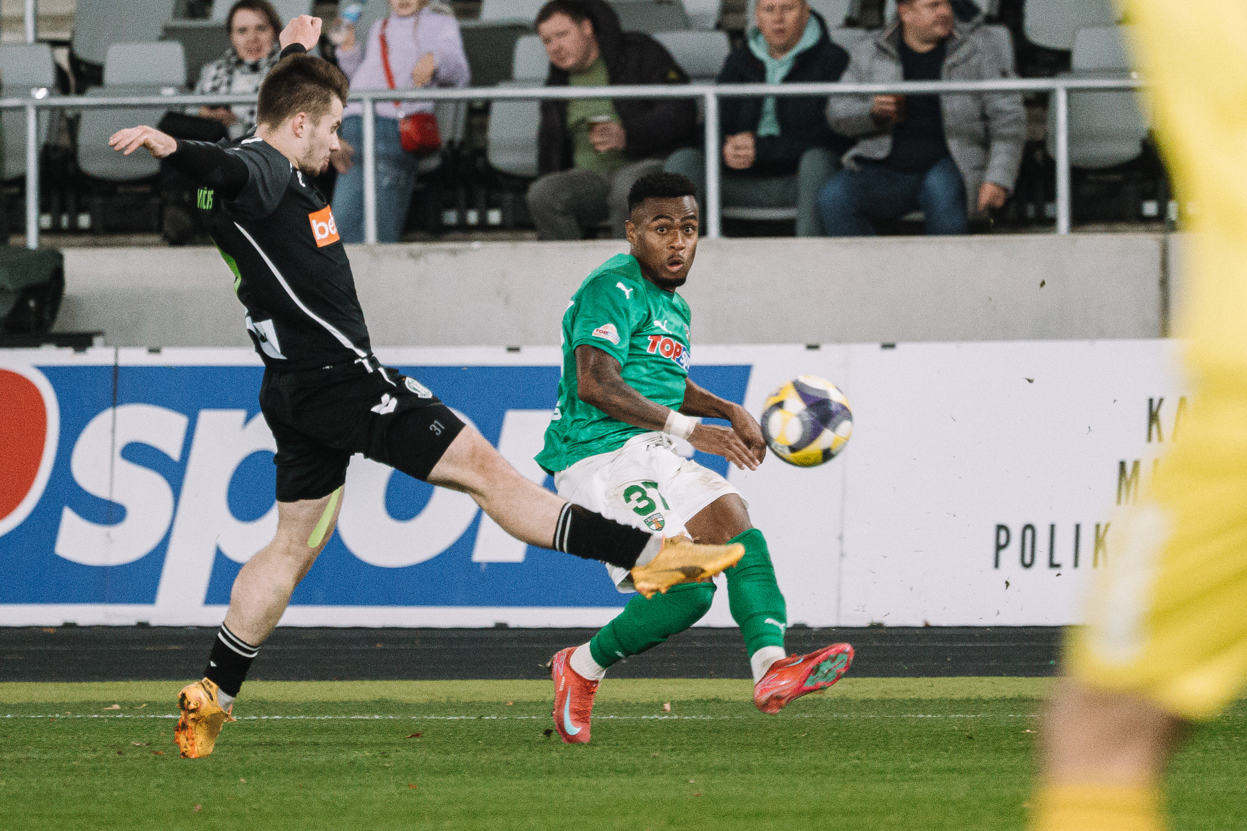 Susitikimui einant į pabaigą svečių vartų sargas apsigynė nuo stipraus tolimo Nikita Komissarovo bandymo, Gabrieliaus Micevičiaus bandymas galva iš arti skriejo tiesiai į M. Bertašių.
