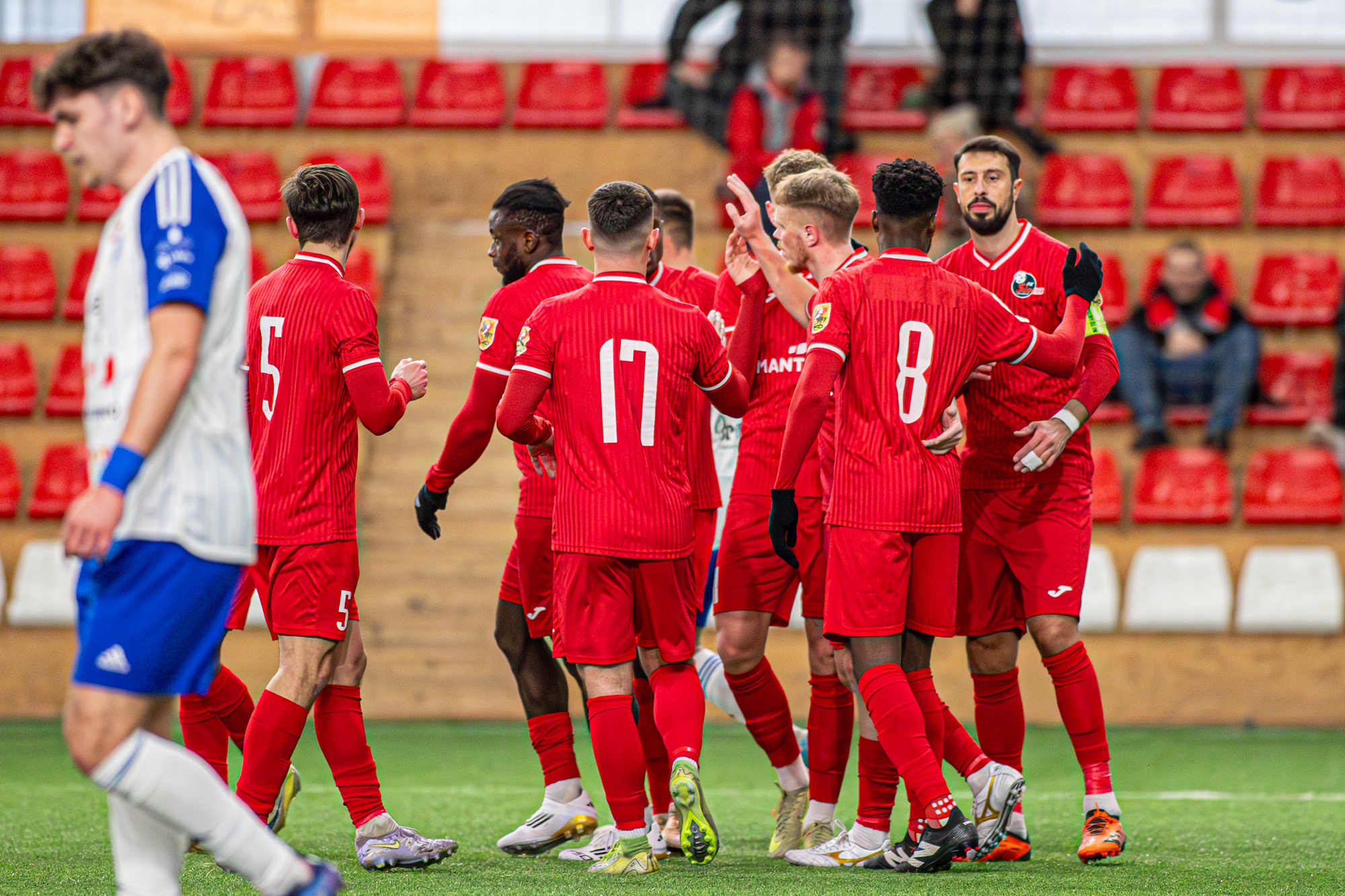 Pirmosiomis minutėmis dėl patirtos traumos buvo pakeistas Marijampolės klubo saugas Ernestas Burdzilauskas.