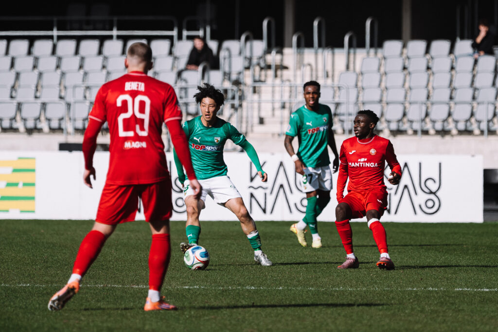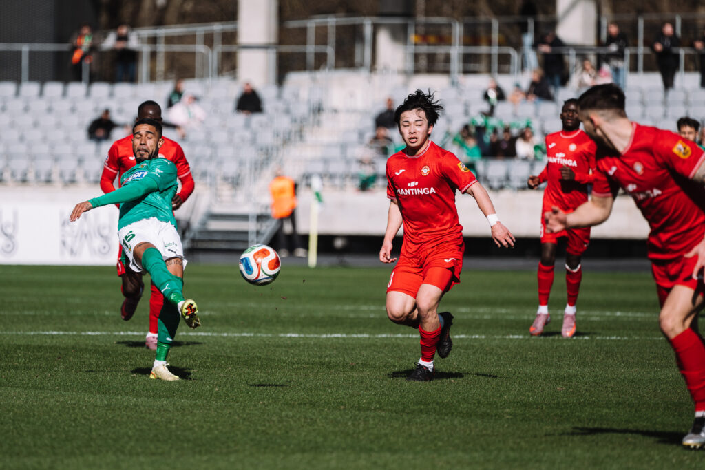 18-ąją minutę laisvo smūgio metu kamuolį į vartus siuntė Faustas Steponavičius, visgi, bandymas buvo atliktas tiesiai į Tomą Švedkauską. Visai netrukus Fabieno Ourega perdavimas į baudos aikštelę esančiam Yukioshi Karashimai galėjo virsti įvarčiu, tačiau japonas šovė virš vartų.
