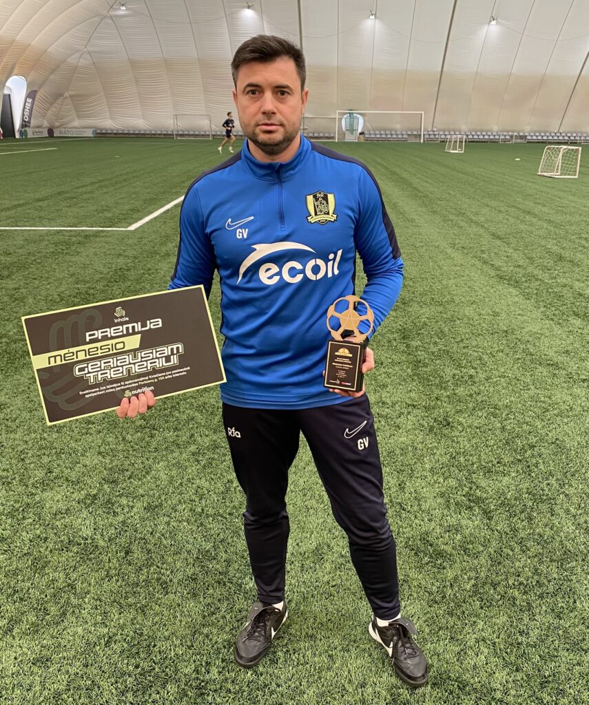 Vilniaus „Riterių“ strategas Gintautas Vaičiūnas sulaukė geriausio spalio mėnesio trenerio įvertinimo. Sostinės klubas per keturis mačus praleido vos 2 įvarčius, pasiekė porą pergalių ir du kartus sužaidė lygiosiomis.