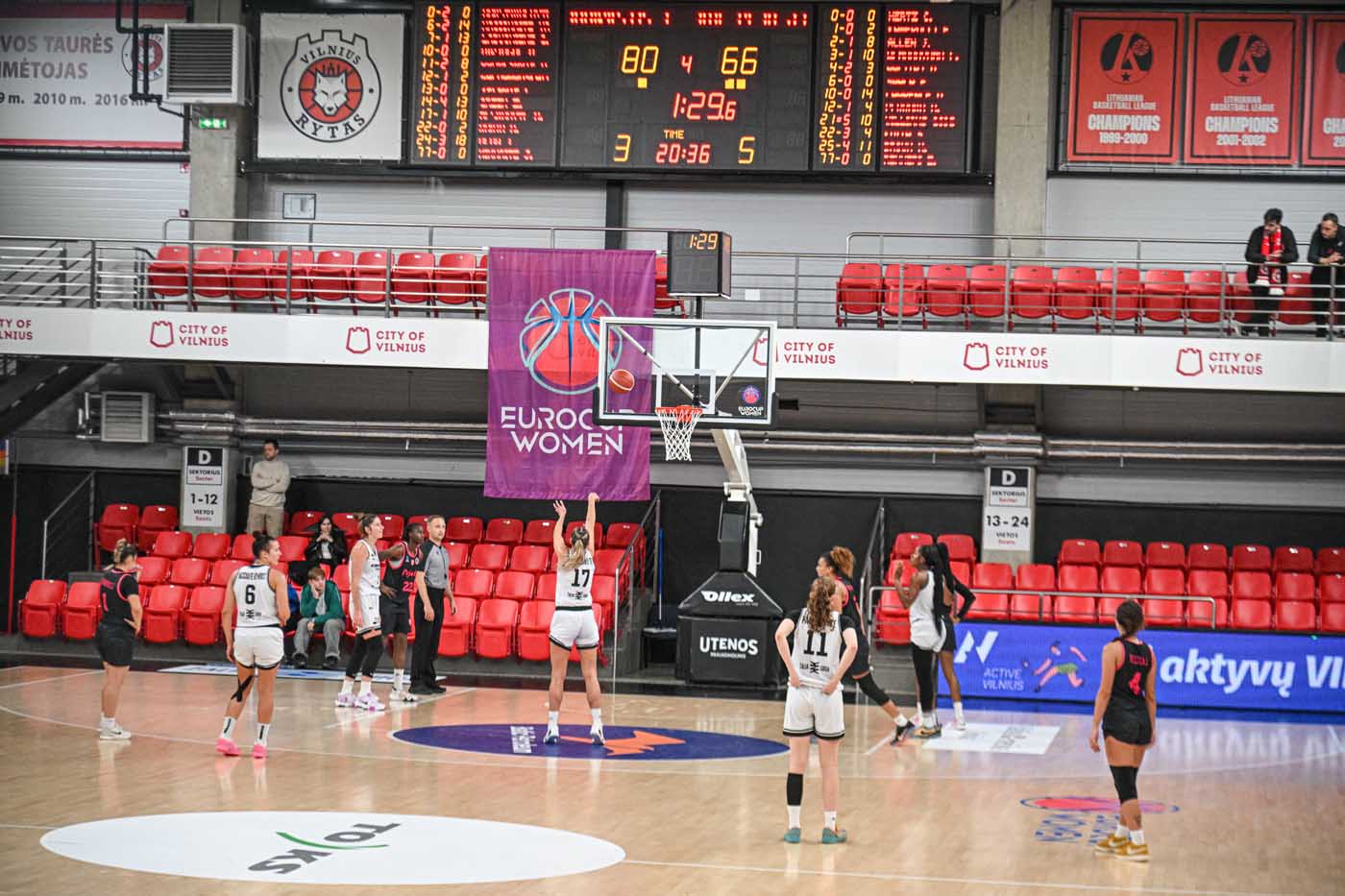 2025.10.16 Moterų Europos taurė: Vilniaus „Kibirkštis-TOKS“ – „KBF Peja 03” 85:69