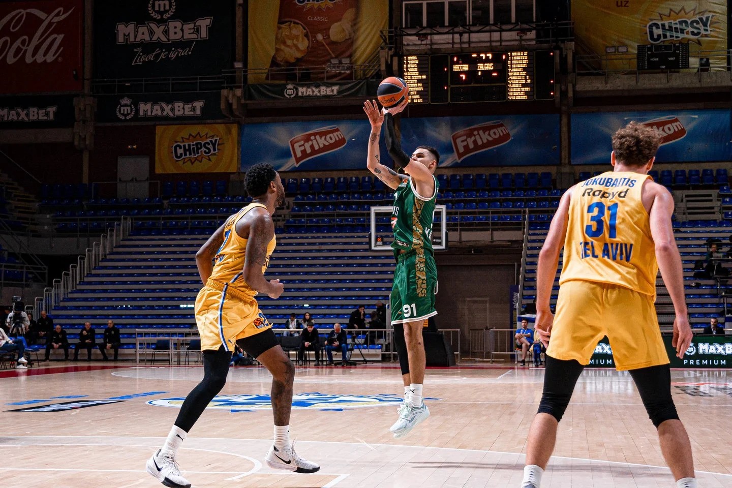 Antrą Eurolygos ratą Kauno „Žalgiris“ (10-8) pradėjo pralaimėjimu Belgrade. Žalgiriečiai Serbijos sostinėje 78:95 (19:26, 19:24, 18:21, 22:24) nusileido Tel Avivo „Maccabi“ (5-13) ekipai.