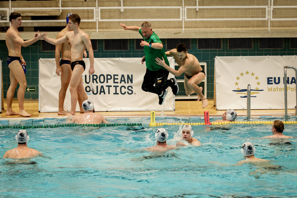 A grupės starte Igorio Martinovičiaus ir Rimvydo Šimansko treniruojami lietuviai 21:5 (6:0, 7:0, 4:3, 4:2) sutriuškino Čekijos komandą, o antrajame mače 11:10 (2:4, 3:1, 4:3, 2:2) pavyko dramatiškai palaužti Didžiosios Britanijos vandensvydininkus.