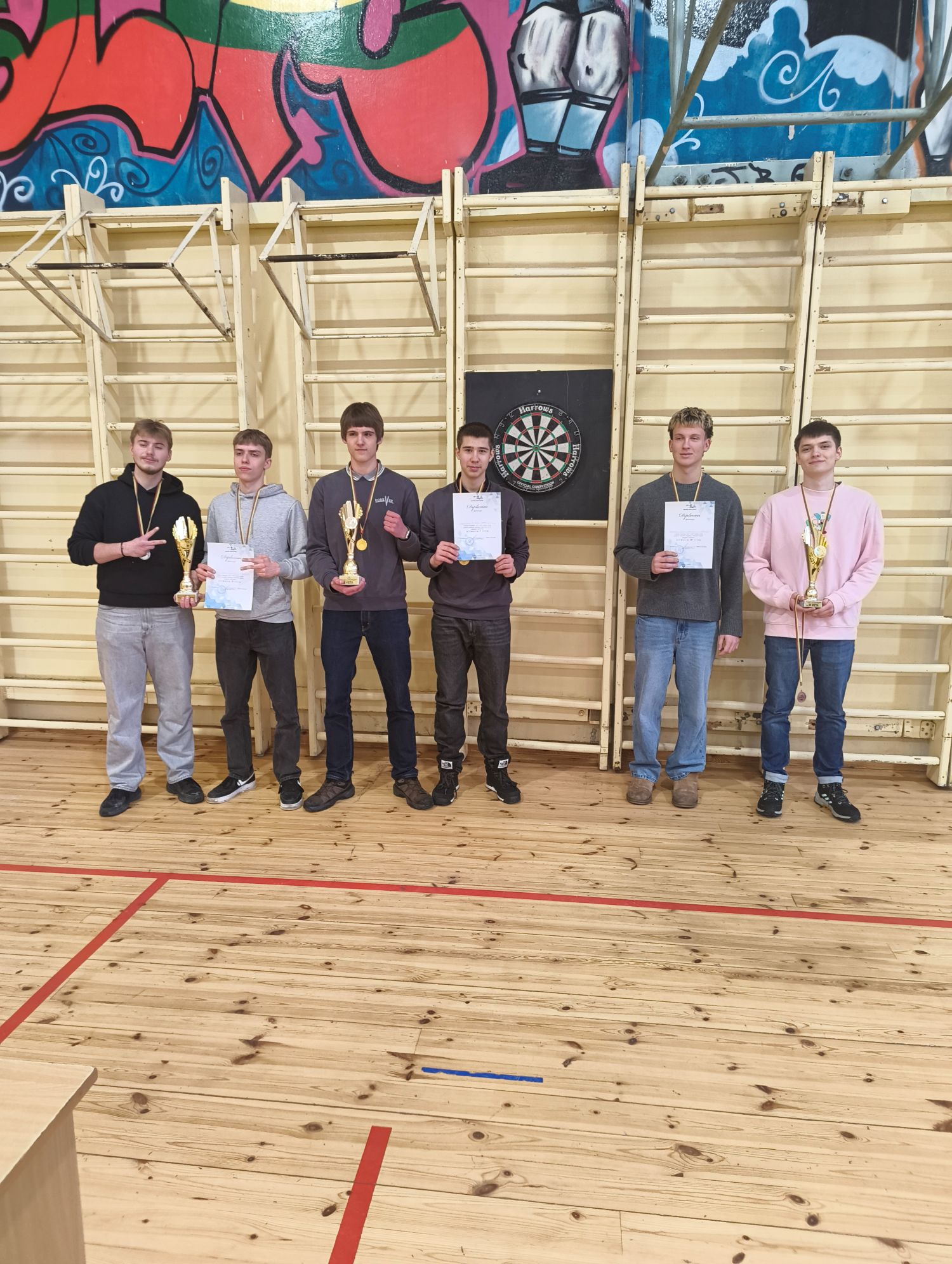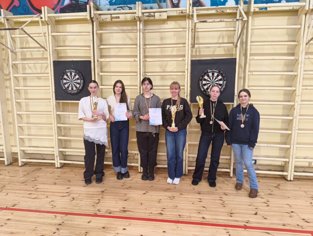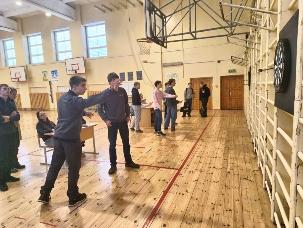Juozo Balčikonio gimnazijoje vykusiose smiginio varžybose moksleiviai demonstravo taiklumą ir gebėjimą išlaikyti koncentraciją lemiamais momentais. Merginų grupėje nugalėjo Juozo Balčikonio gimnazijos komanda, antrąją vietą užėmė Juozo Miltinio gimnazija, trečiąją – Panevėžio „Minties“ inžinerijos gimnazija, ketvirtą – Panevėžio 5-oji gimnazija. Vaikinų grupėje stipriausia buvo 5-osios gimnazijos komanda, aplenkusi Juozo Miltinio ir Juozo Balčikonio gimnazijų atstovus. Finalinėse smiginio varžybose Elektrėnuose Panevėžiui atstovaus Juozo Balčikonio gimnazijos merginų ir 5-osios gimnazijos vaikinų komandos.