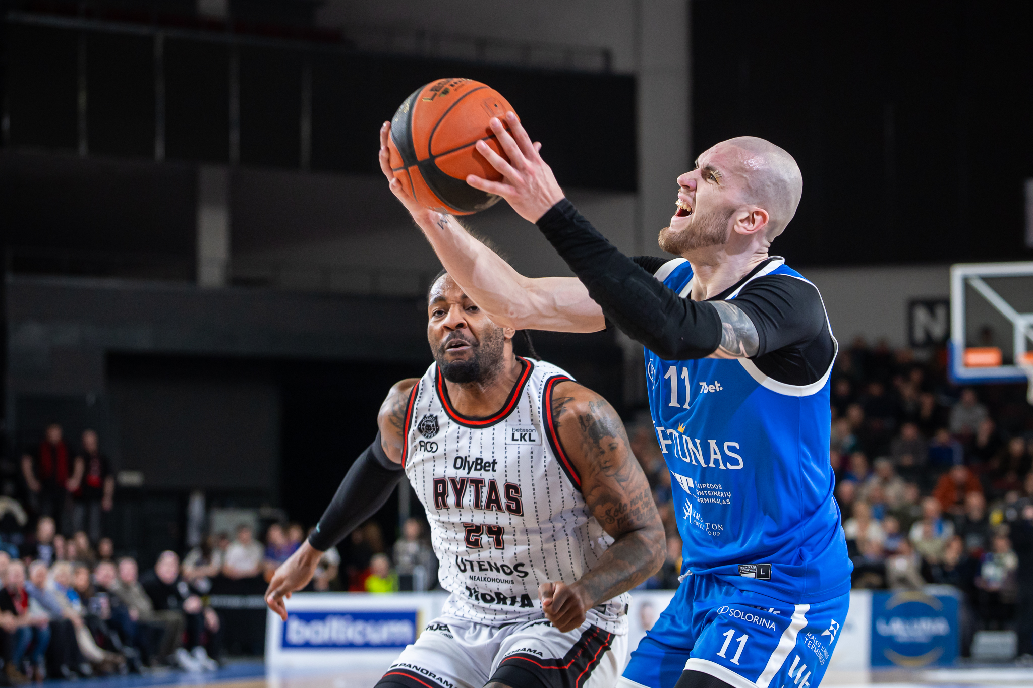 Metimą iš po krepšio pataikė R.Šmitas, B.Manekas taikliai metė iš toli, o K.Evansas įsirašė dar penkis taškus – 35:35. Komandos draugo metimą pataisė Edgaras Ulanovas, Edmondas Sumneris smeigė tritaškį, o pirmą dalį dvitaškiais uždarė K.Evansas ir E.Ulanovas – 44:38.