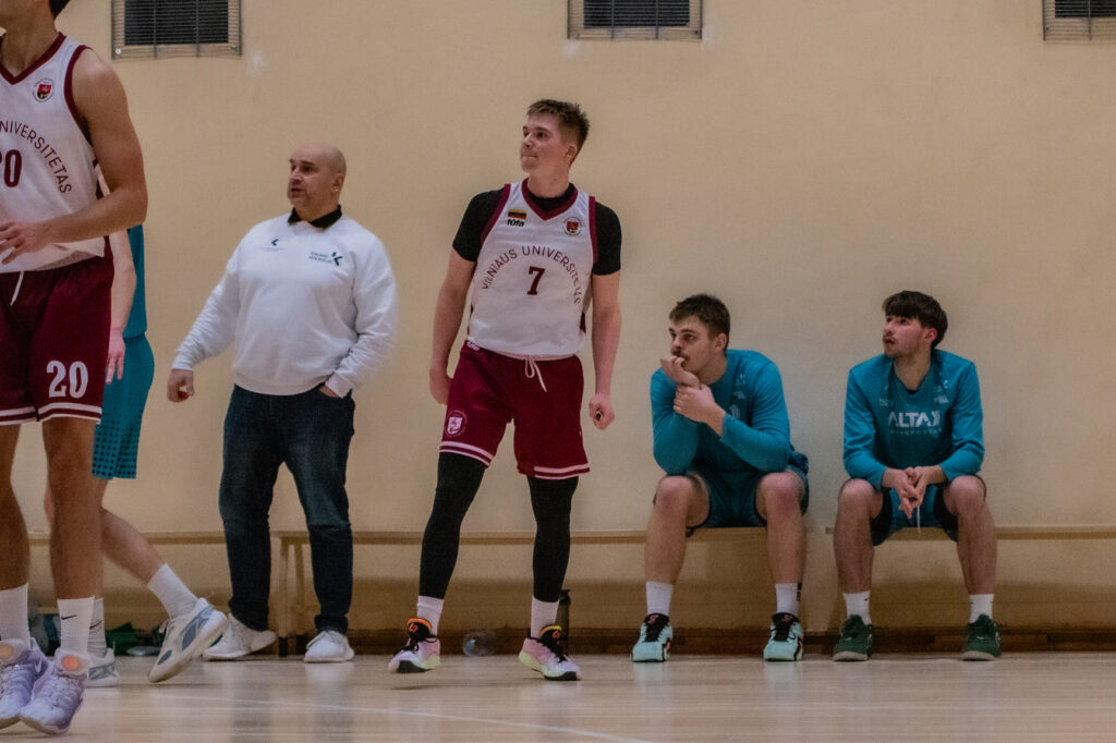 Vilniaus universiteto studentus bandė gelbėti Marijus Miškinis, pelnęs 21 tašką (5/9 dvit., 2/7 trit., 5/6 baudos, 4 rez. perd.), Ignas Venskus, pridėjęs 14 taškų, ir dvigubu dubliu pasižymėjęs Vincentas Adomaitis – 11 taškų ir 13 atk. kam.