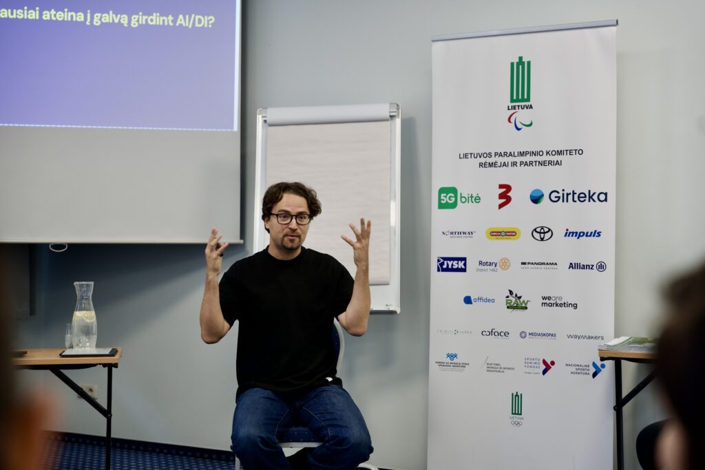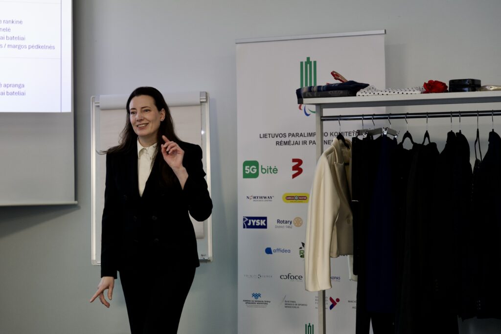 Antroji mokymų diena prasidėjo madingai. Įvaizdžio stilistė Brigita Zygmantaitė paraatletams pasakojo apie aprangos etiketą sporto pasaulyje, kaip reikėtų rengtis kasdienybėje ir oficialių progų metu. O „Befriend AI“ įkūrėjas, DI treneris Dov Zavadskis kalbėjo apie ChatGPT subtilybes.