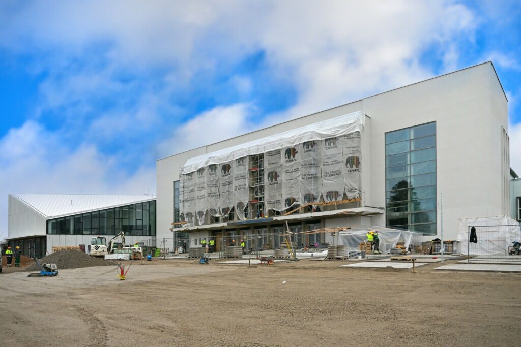 Objekte matyti reikšminga pažanga tiek pastato viduje, tiek išorėje. Vidaus apdailos darbai įsibėgėję – plytelėmis išklijuota apie 78 proc. numatytų paviršių, beveik visi plotai nutinkuoti, jau sumontuota 95 proc. gipskartonio pertvarų. Dažymo darbai taip pat juda į priekį – pirmuoju dažų sluoksniu padengta apie 70 proc. paviršių.