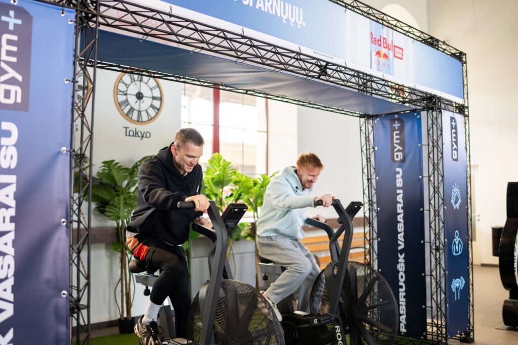Treniruočių stoteles penktadienio popietę išbandė ir komikas Markas Žukauskas bei profesionalus krepšininkas Domantas Šeškus. Vilniaus geležinkelio stotyje jie surengė improvizuotas varžybas. Dalyviams teko įveikti skirtingas užduotis – nuo ištvermės reikalaujančio dviračio mynimo iki jėgos ir stabilumo pratimus apimančių rungčių.