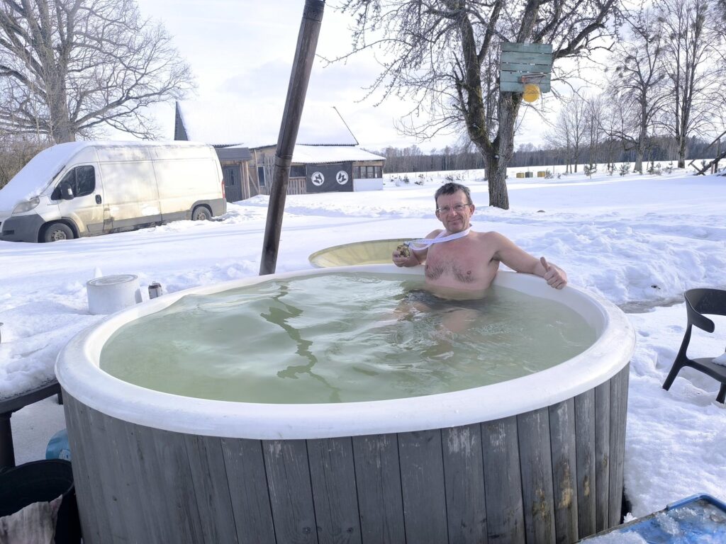 Po bėgimo sportininkų laukė pirtis, kubilas, vaišės, šilta sriuba.
