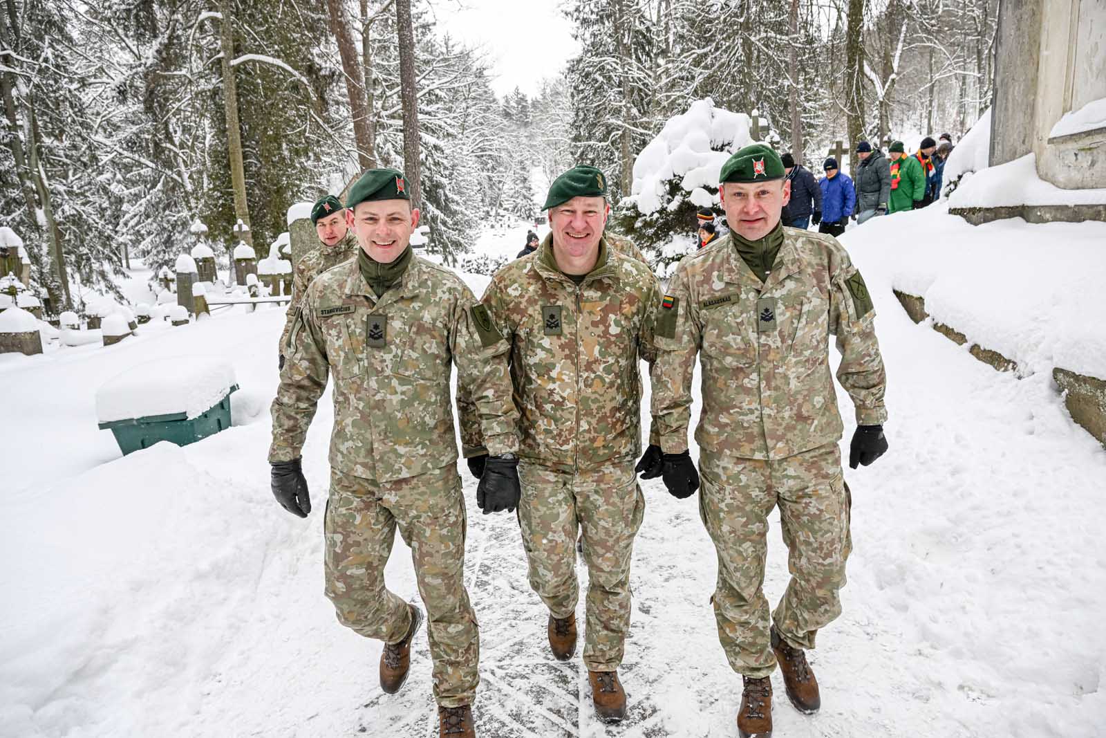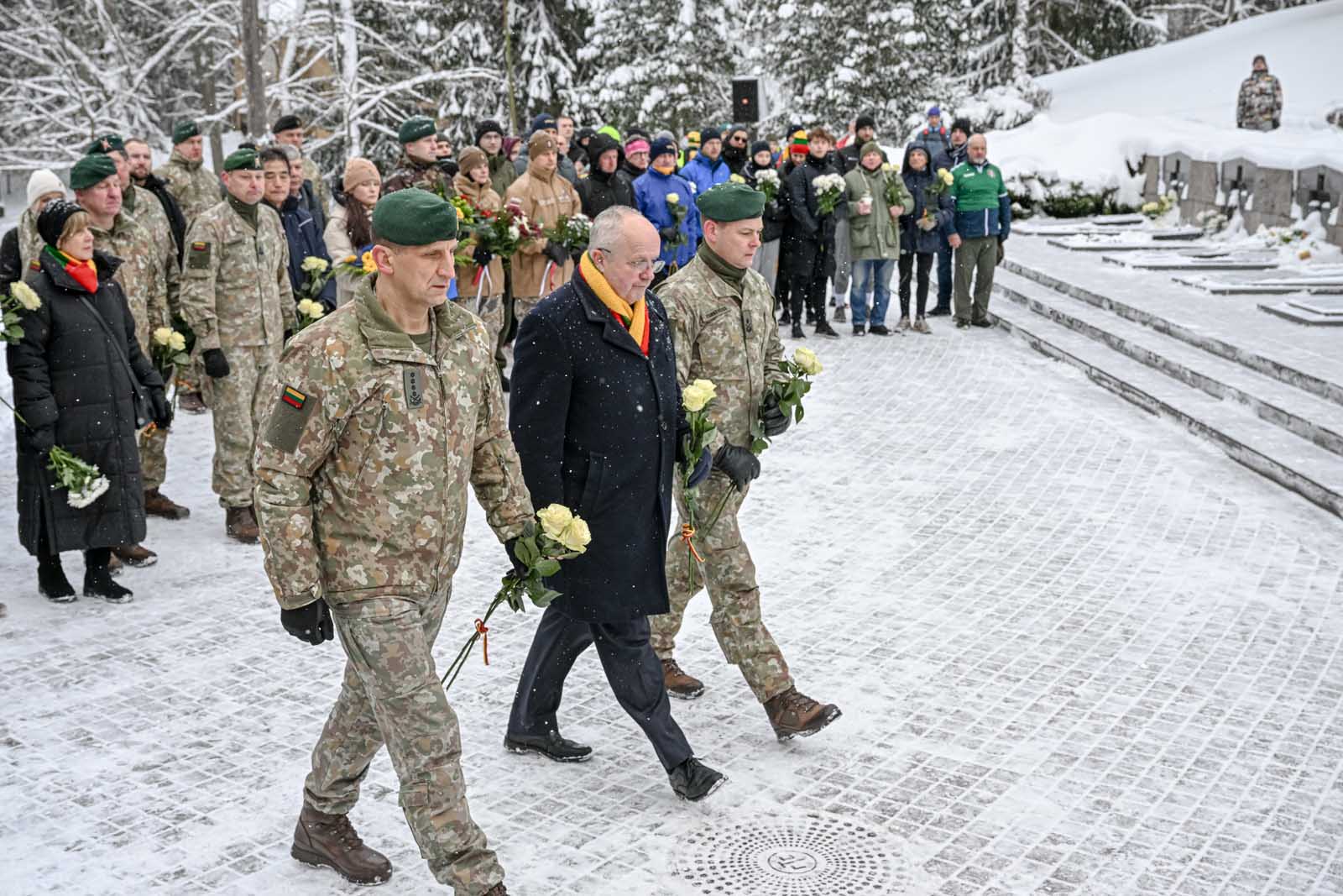 Lietuvos kariuomenės Garbės sargybos kuopa Antakalnio kapinėse padėjo gėles ant žuvusių Laisvės gynėjų kapų, pagarba išreikšta tylos minute.