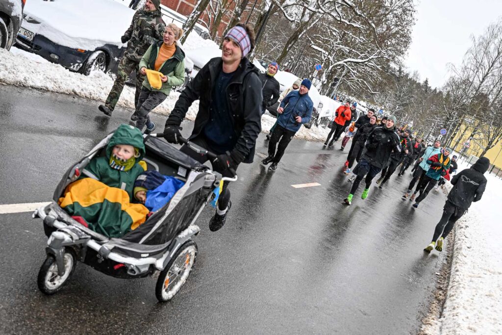 Radijo stoties M1 dizaineris Martynas Pikiotas garbingai atstovavo savo šeimai – bėgo su dar dailiajame vežimėlyje esančia pusantrų metukų dukryte Upe.