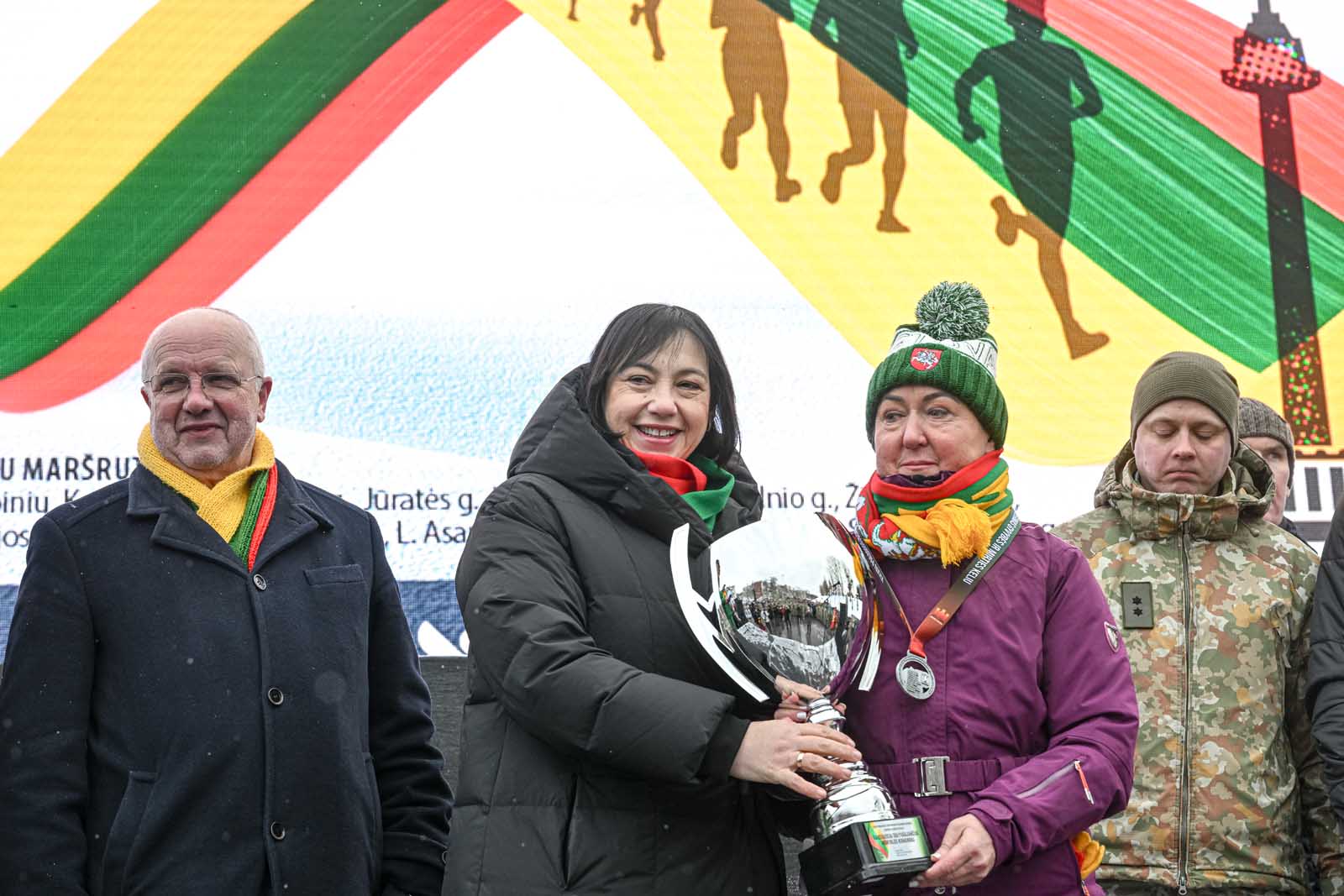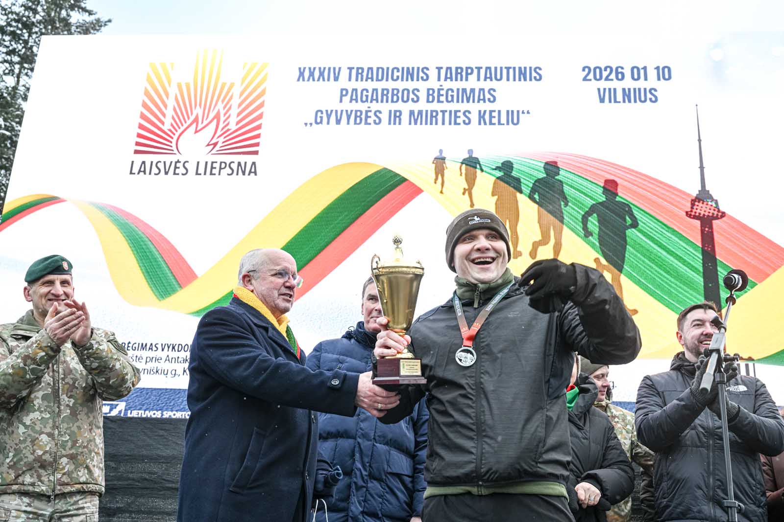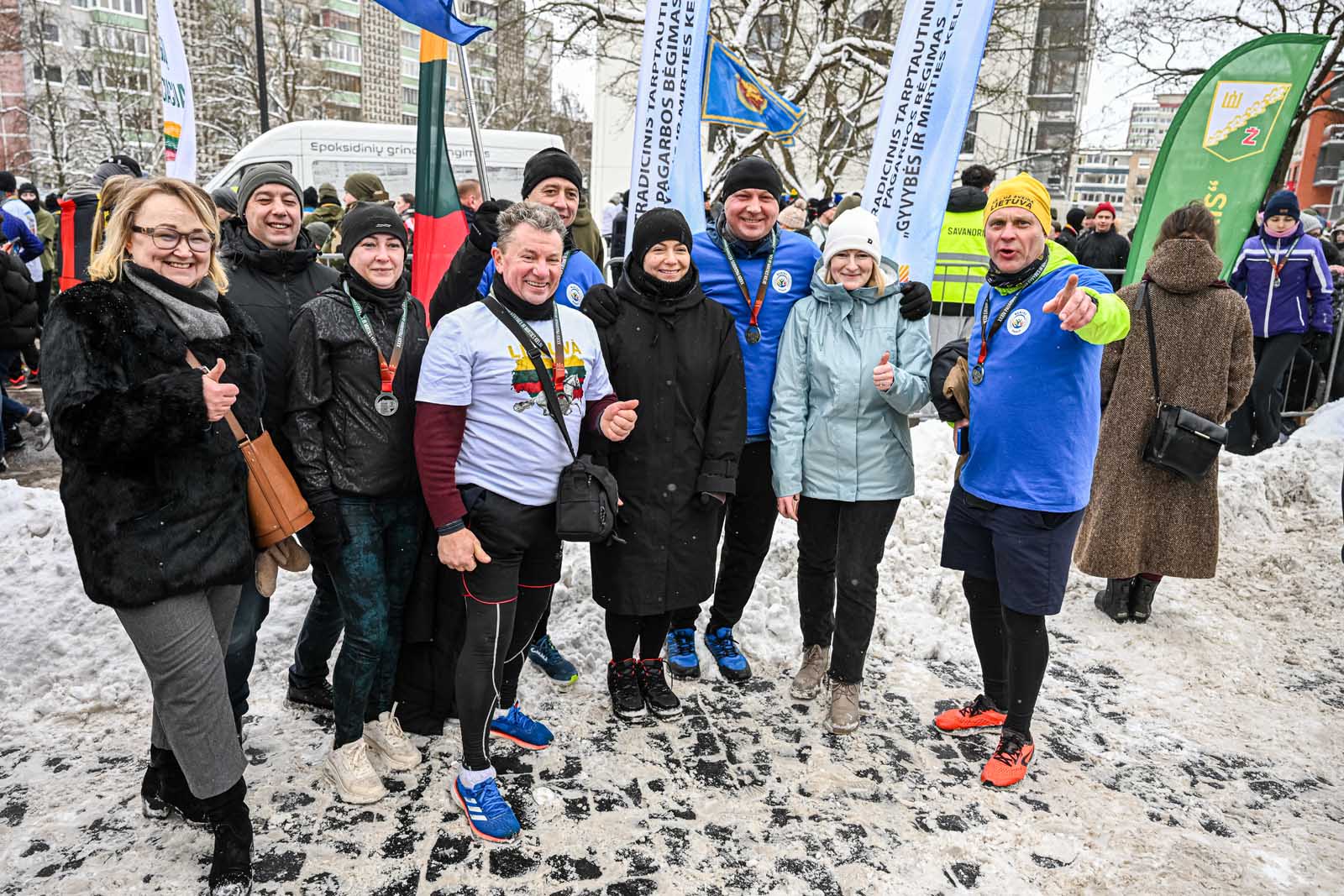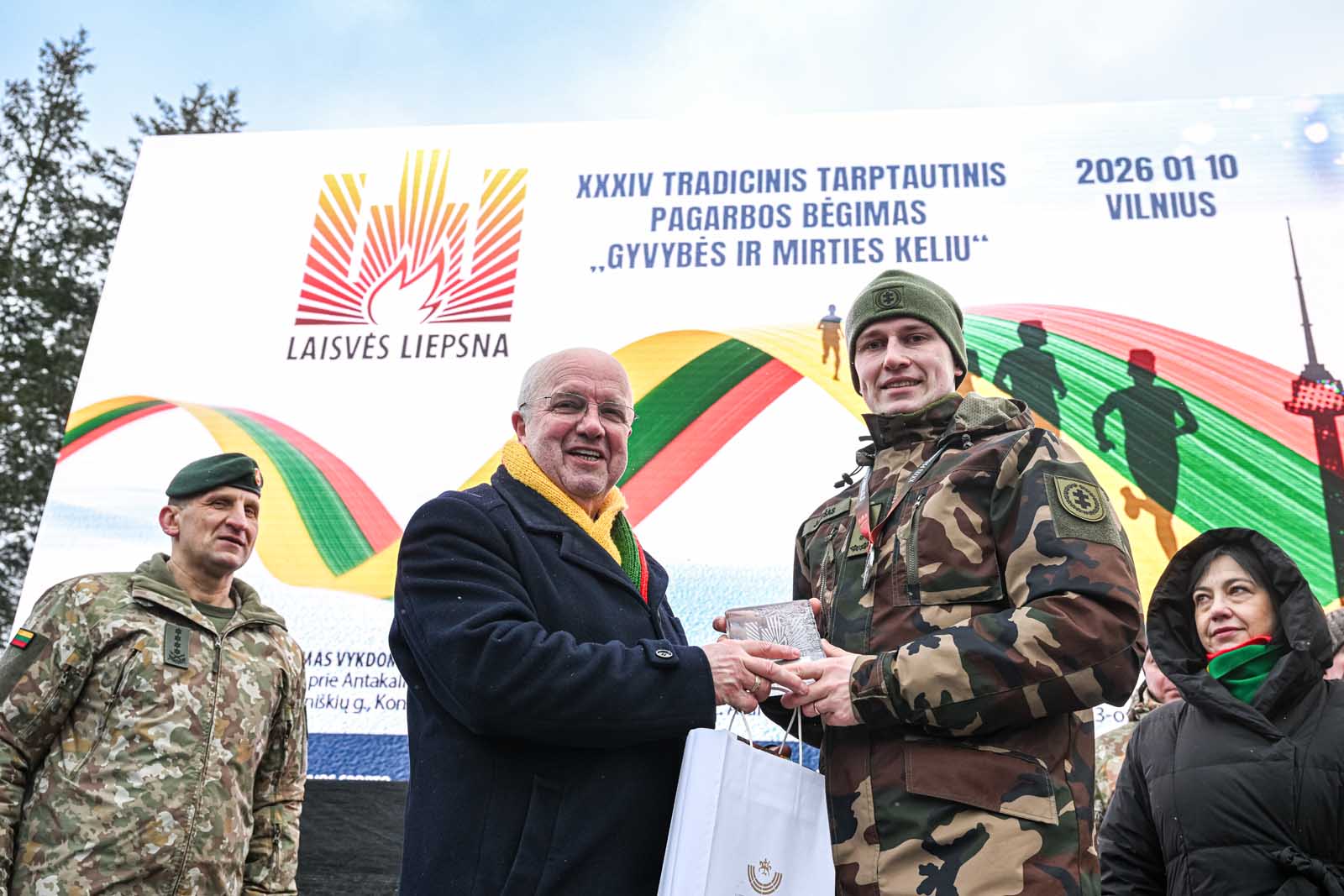 Šiems trims bėgikams buvo įteikti pirmieji atminimo medaliai, kuriuos dalijo savanoriai – Vilniaus Sausio 13-osios progimnazijos ir Karoliniškių gimnazijos mokiniai.