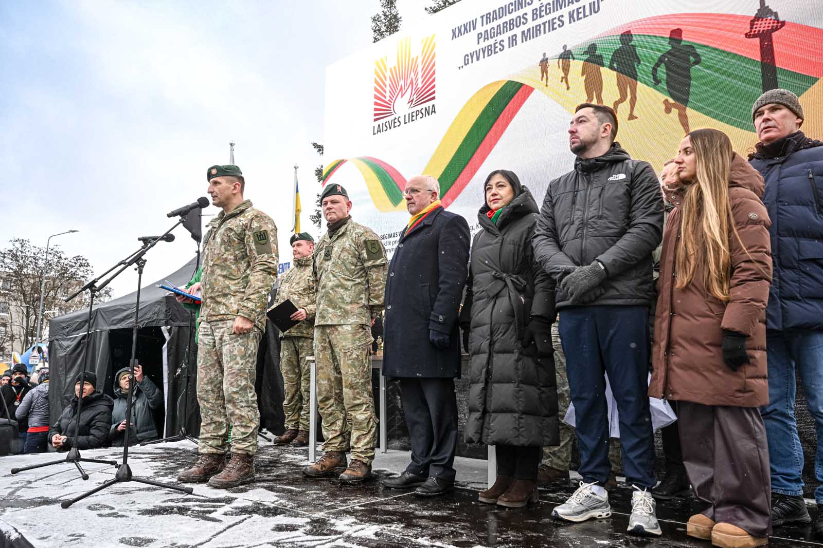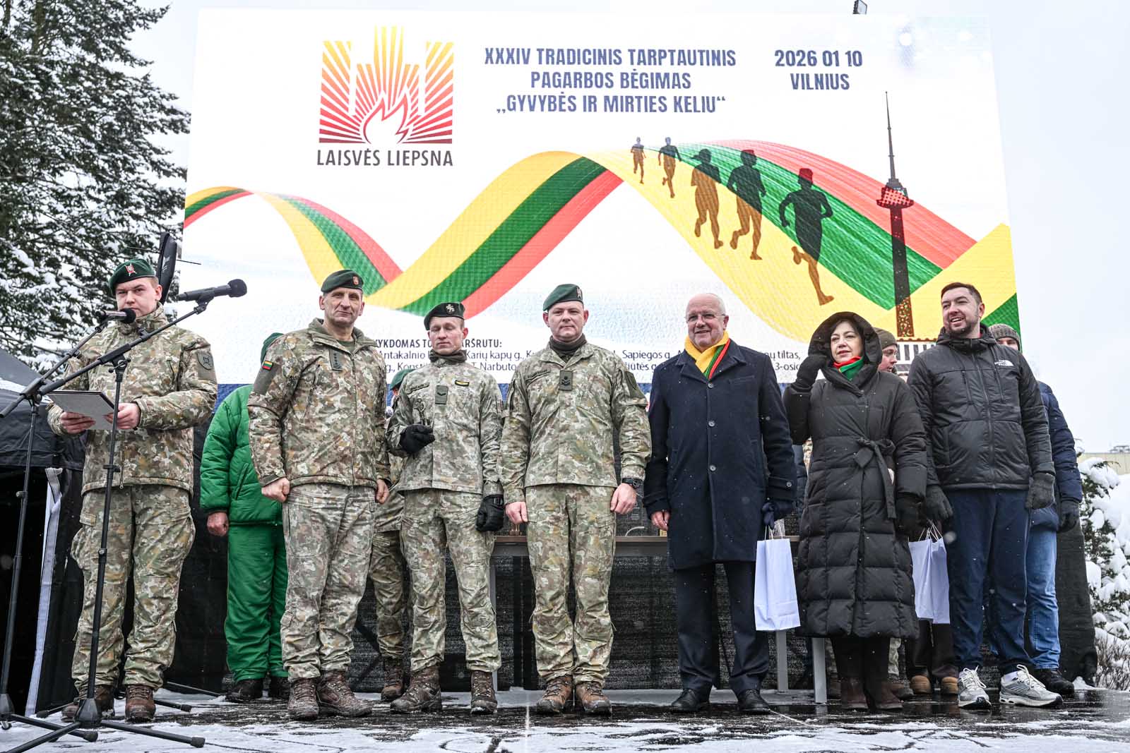 Tarp dalyvių – ir Užsienio reikalų ministras Kęstutis Budrys, Lietuvos kariuomenės vadas generolas Raimundas Vaikšnoras, Seimo nariai olimpinė čempionė Laura Asadauskaitė-Zadneprovskienė ir Laurynas Kasčiūnas, sinoptikas Naglis Šulija.