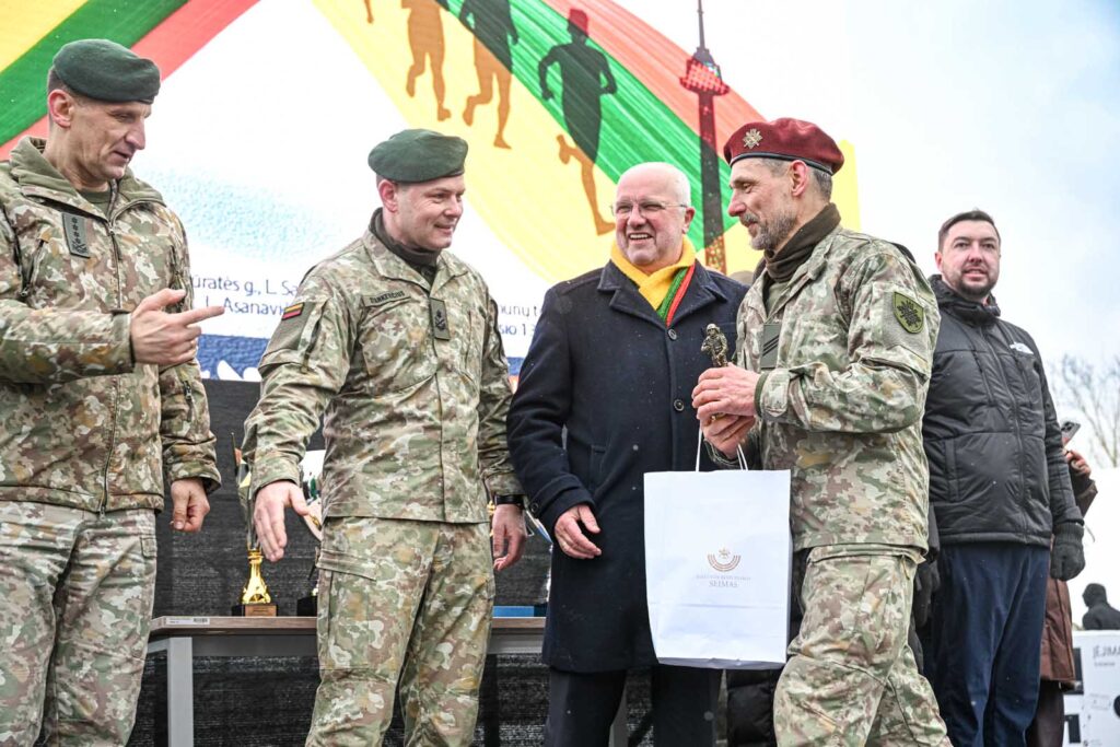 Seimo prizą gausiausiai bėgimo komandai – Lietuvos šaulių sąjungai – įteikė J.Olekas.
