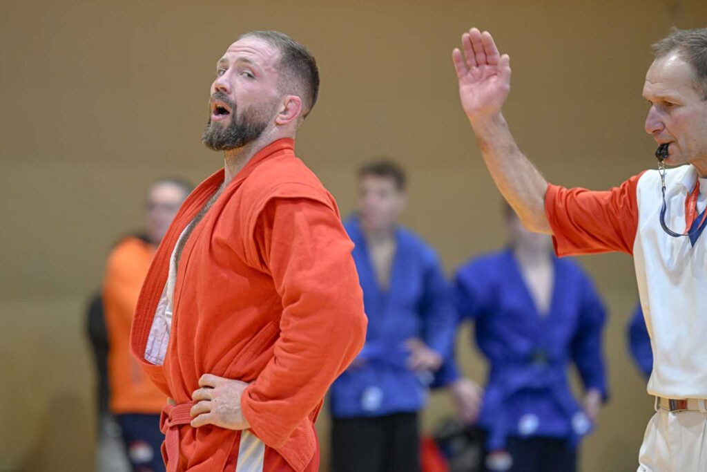 Sportiniame sambo šis 194 cm ūgio atletas pirmą kovą laimėjo, o antrą pralaimėjo 28 metais už save vyresniam daugkartiniam Lietuvos sambo čempionui Ignui Vaičiuliui.