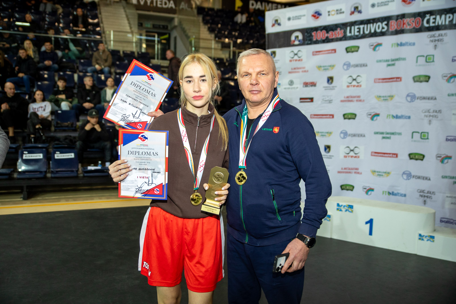 Dviejų kauniečių akistatoje Ugnė Vasiliauskaitė (iki 57 kg) rezultatu 5:0 (30:26, 30:27, 30:27, 29:28, 30:27) pranoko Viltę Savickaitę ir pirmą kartą karjeroje pelnė šalies pirmenybių aukso medalį.