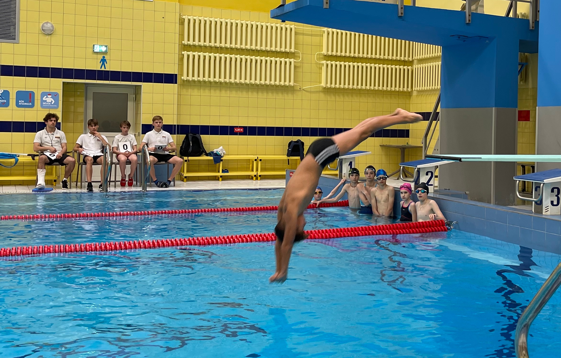 Sostinės vaikų ir jaunimo centras surengė tradicines pavasario šuolių į vandenį varžybas naujokams, kurie pratybas lanko ne daugiau kaip porą metų.