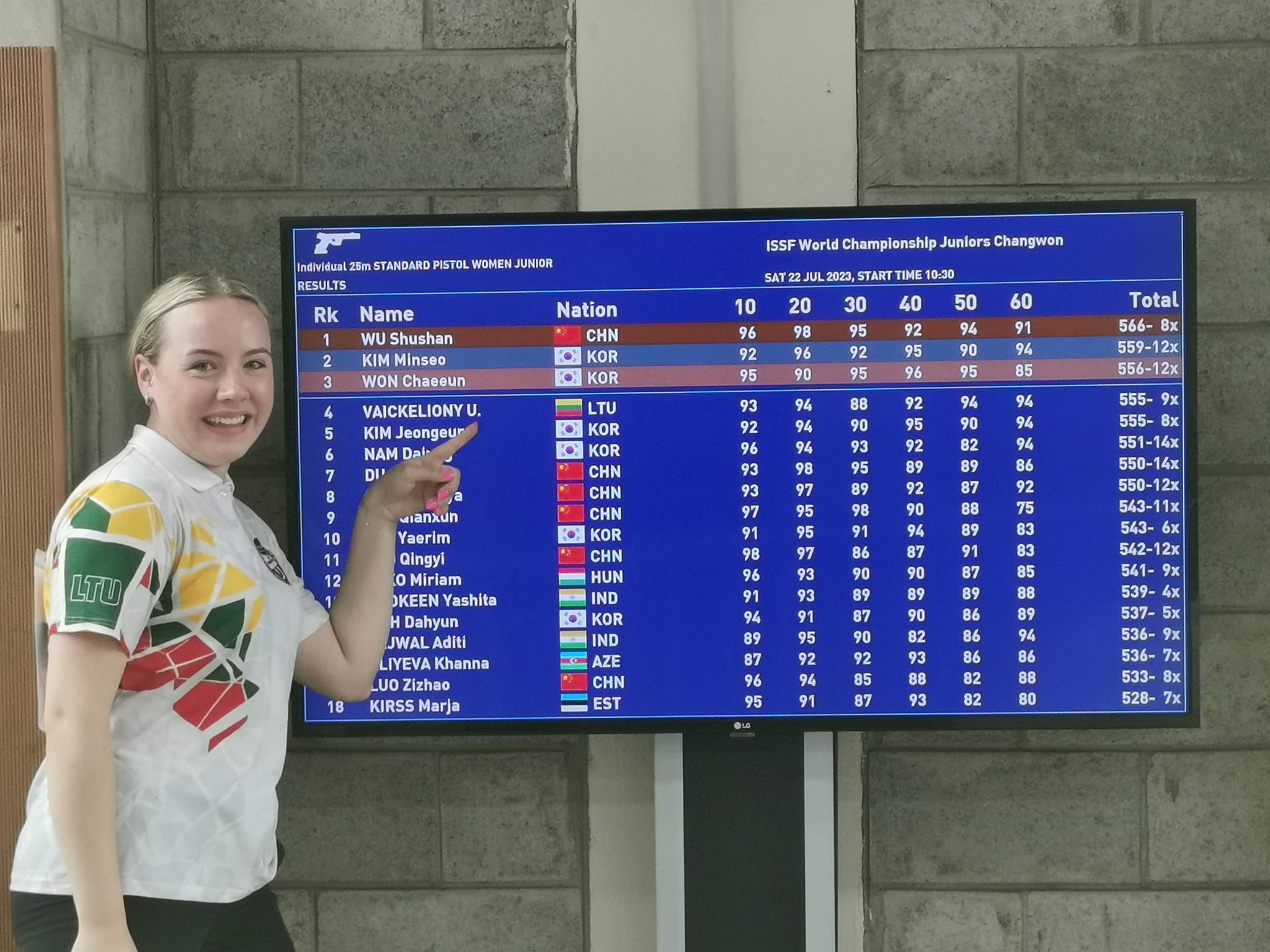 Pietų Korėjoje vykstančiame pasaulio jaunimo šaudymo čempionate aukštą ketvirtą vietą užėmė lietuvė Ugnė Vaickelionytė.