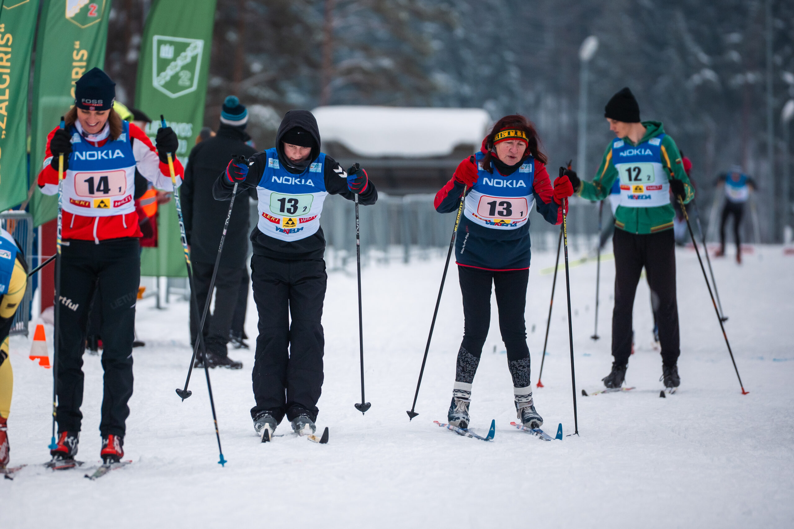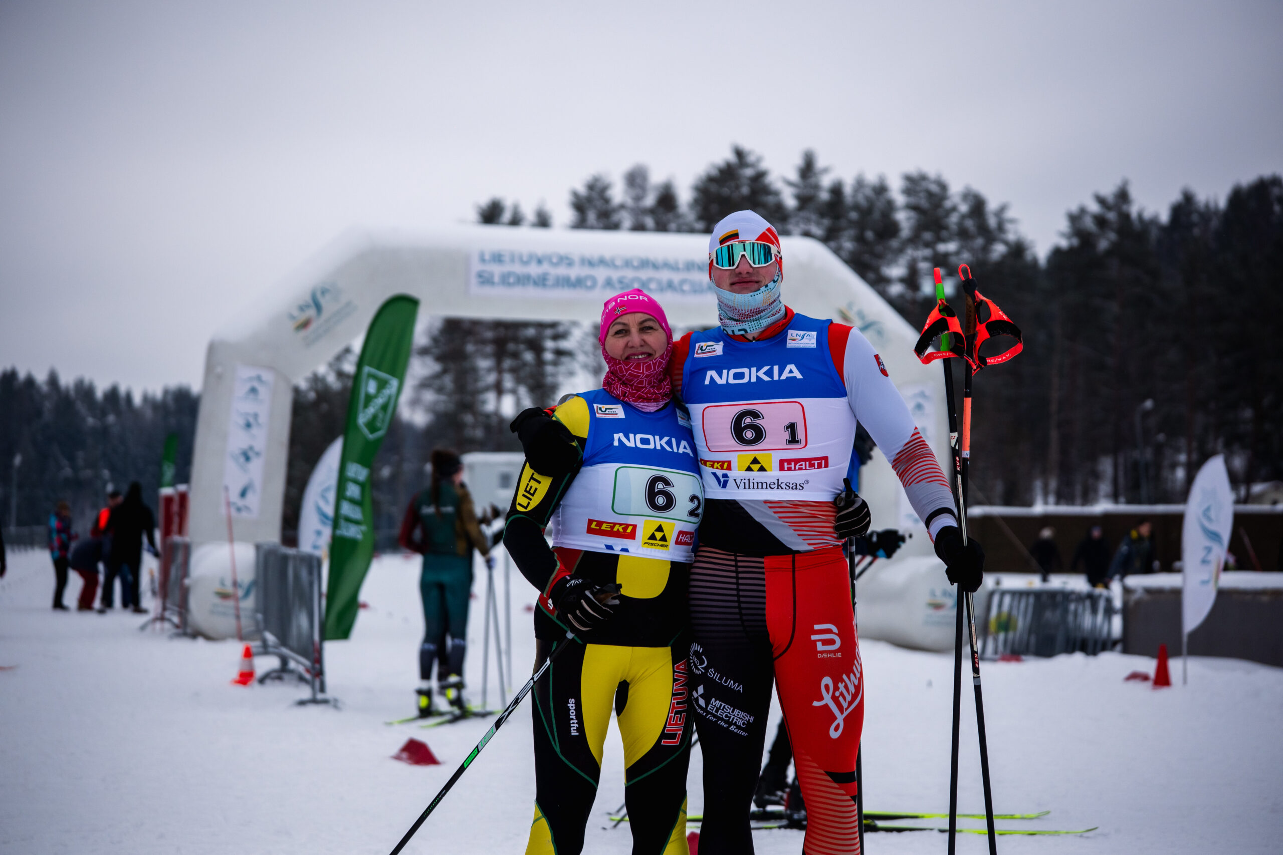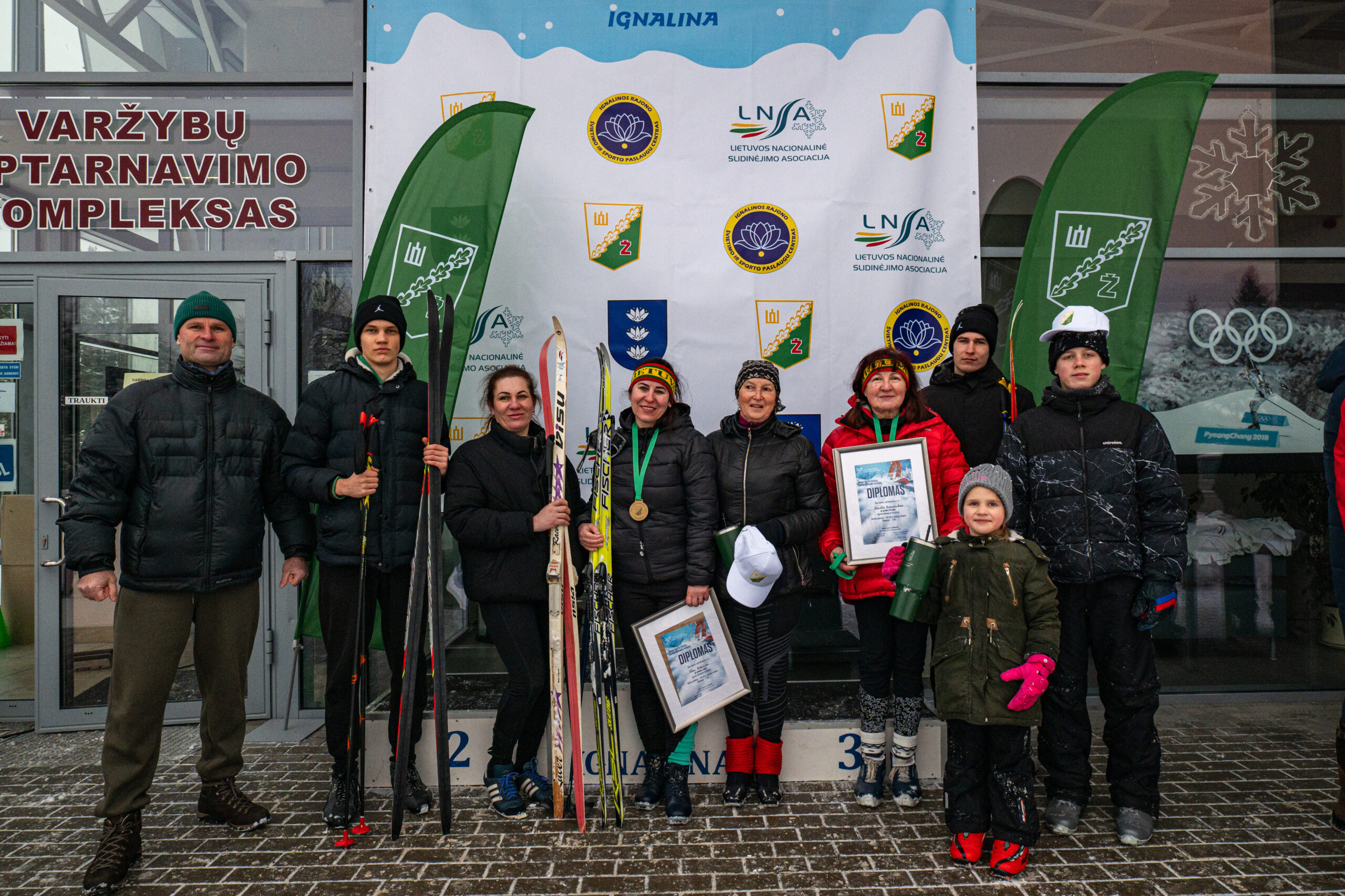 Tarp jų – ir Vankuverio, Pjongčango, Pekino bei Milano ir Kortinos olimpinių žiemos žaidynių dalyvio, 37-erių ignaliniečio Modesto Vaičiulio mama, garsi praeityje Lietuvos slidininkė Dalia Bujevič-Vaičiulienė, kuri šeimų estafečių varžybose porą sudarė su 20 metų sūnumi iš antrosios santuokos Aironu Pūru.